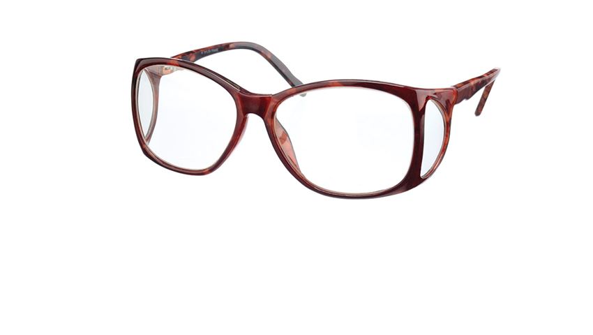 53 Wrap Radiation Protection Glasses Flexible hinges offer more comfort and less resistance than a standard hinge. Saddle bridge style distributes weight evenly over the nose. Standard side shields offer additional protection. Available in Black or Tortoise.