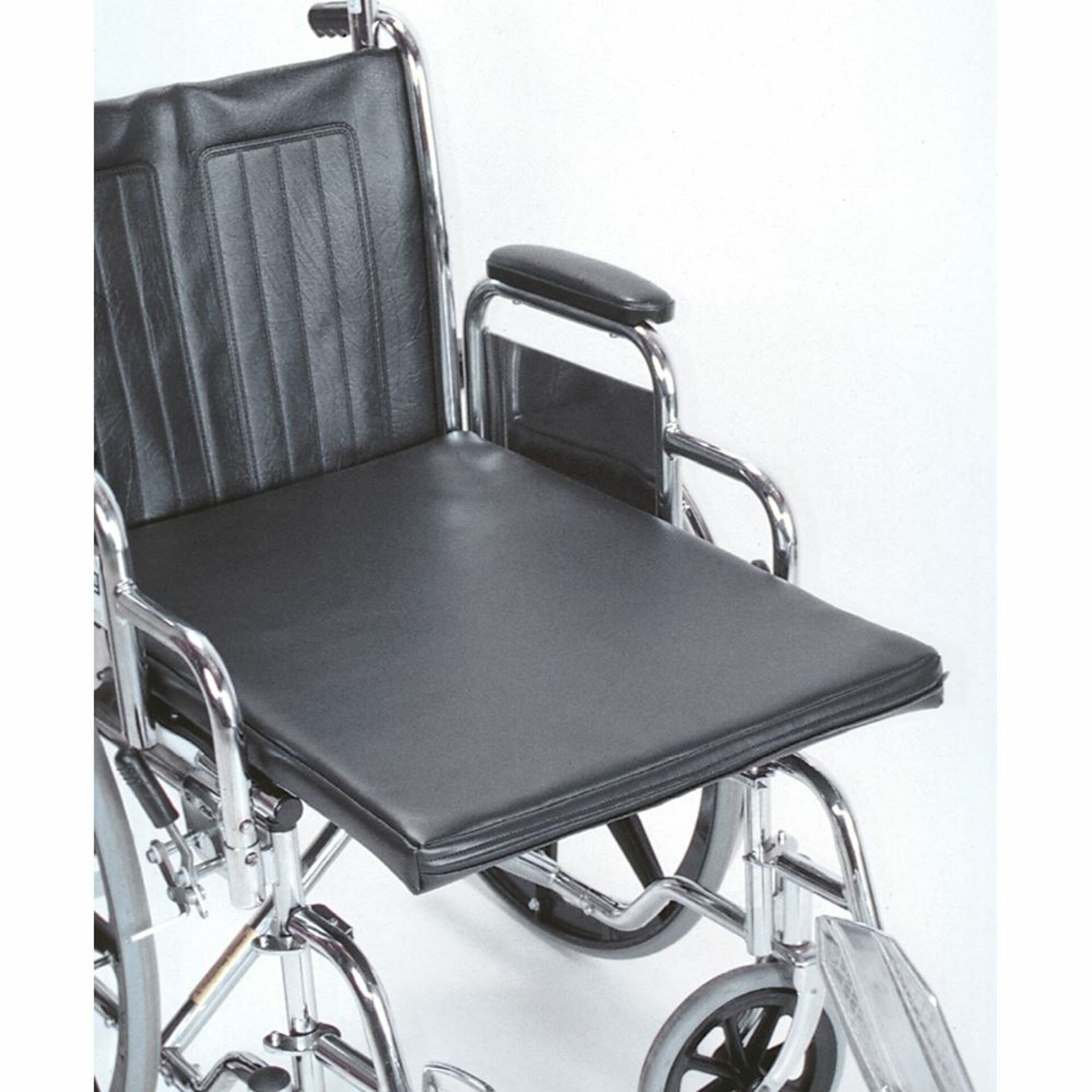 AliMed® Amputee Wheelchair Surface is just right for post-op BK amputees. Standard version has a sturdy 1/2″ plywood base, is padded with 1″ of resilient polyfoam and is covered with black Naugahyde®. Premium version provides more cushioning with its thick gel layer. Attachment ties included. Both Standard and Premium fit 18″W wheelchairs.
