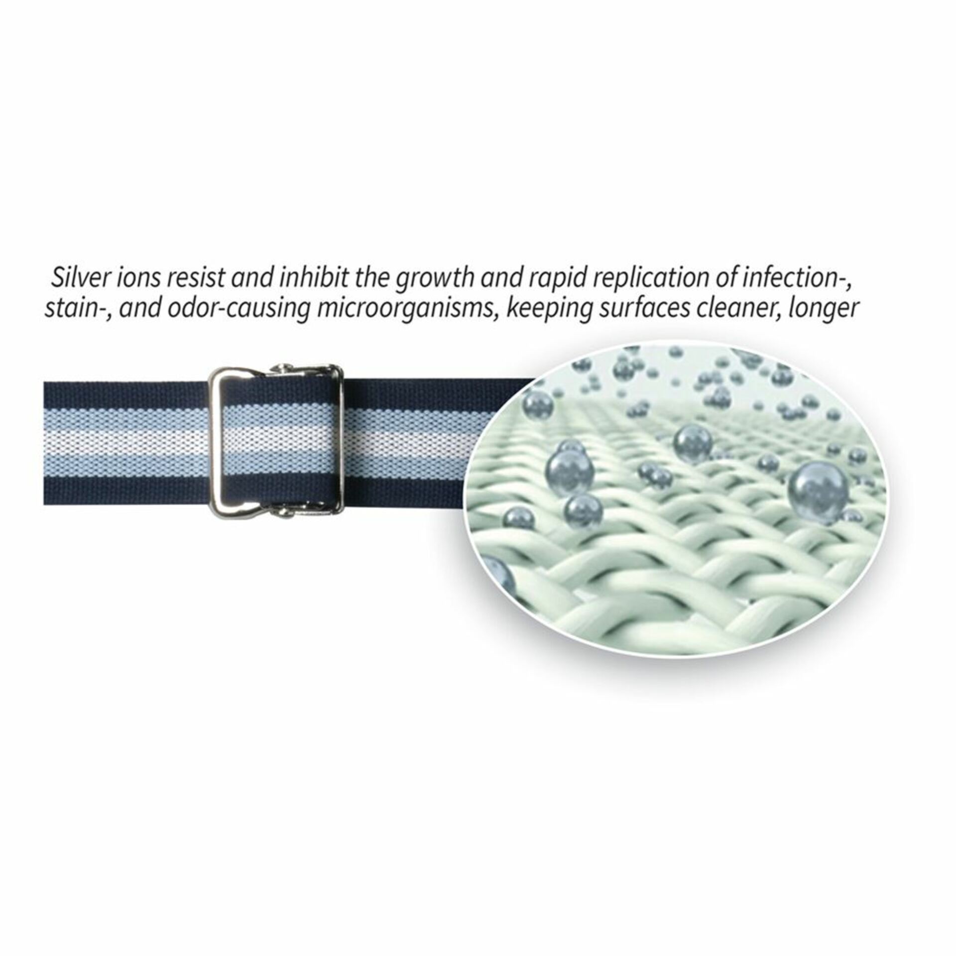 AliMed® Antimicrobial-Treated Gait Belt provides a secure way to support patients during transfers with the added benefit of bacteria-fighting silver particles embedded in the fabric to inhibit the growth of bacteria, molds, yeasts, and fungi for the life of the product, decreasing the spread of infection. Nontoxic. Wash repeatedly without losing efficacy. Dark Blue/Light Blue/White striped design with metal buckle. Choice of 54″L or 70″L.