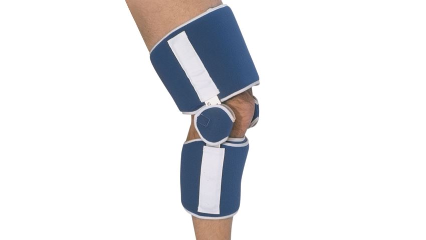 Cushion cuffs are thick, self-padded washable fabric with hook-and-loop fasteners. All joints feature fully cushioned protectors. Bilateral uprights. Includes removable padded patellar strap. Fits left or right. Specify size when ordering.