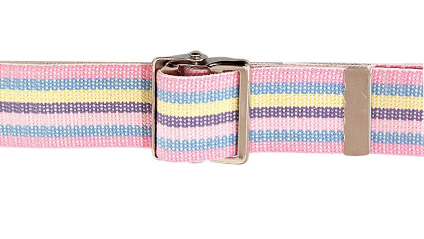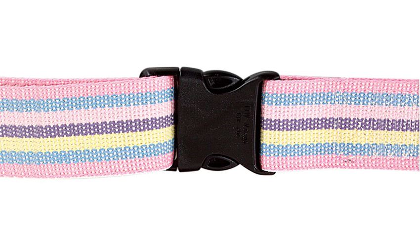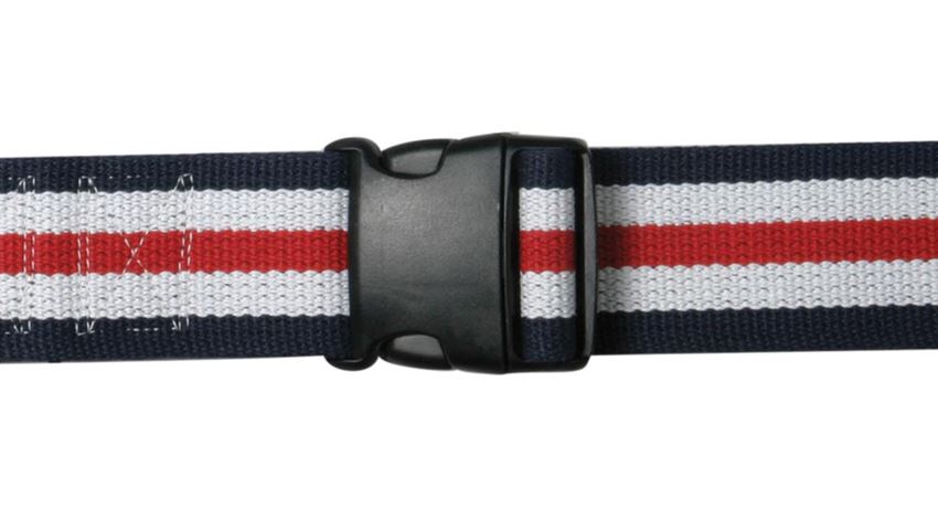 Nickel-plated metal buckle or easy-release, snap-in-place plastic locking buckle