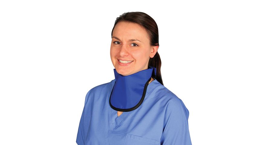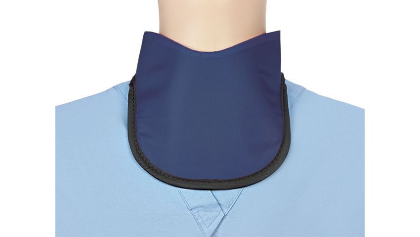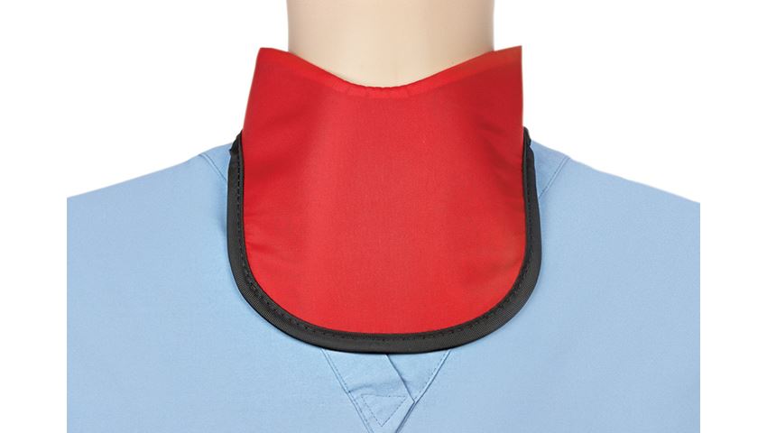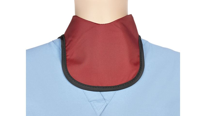 AliMed® Grab ‘n Go™ Thyroid Shield, Standard Weight Lead coordinates with your Grab ‘n Go aprons. Can be ordered separately. Feature an internal seam and no top binding to prevent chafing. Hook-and-loop closure. Provides 0.5 mm Pb equivalent front protection. Available in Burgundy, Navy, Red, and Royal Blue.