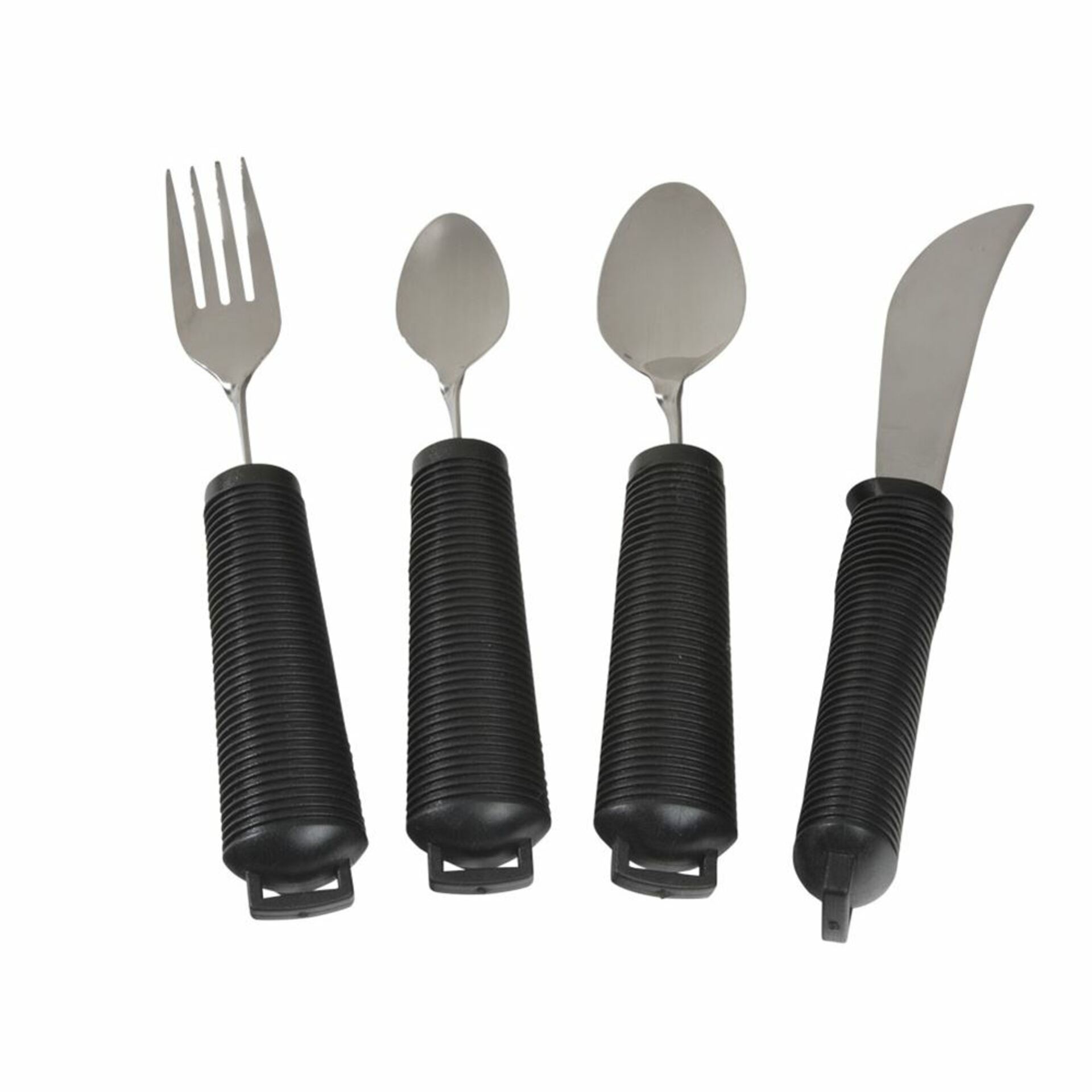 AliMed® Grip Utensils These easy-to-grip, high-quality utensils have comfortable, oversized textured handles. Black.