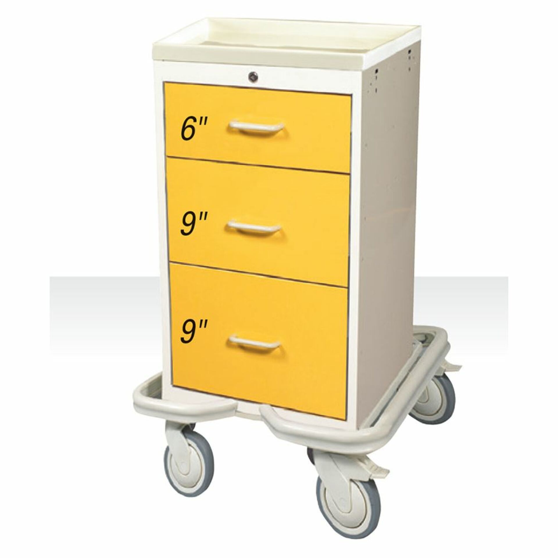 AliMed® Mini Series 3-Drawer Isolation Tower, Stainless Steel, Key Lock All the functionality of our Standard Series in a compact, fully mobile size so you can quickly and easily maneuver through narrow hallways and congested areas. Designed with deeper drawers to hold everything you need—from gloves to gowns—to help protect you and your patients from the spread of infection. Choose from five drawer colors with matching solid frame or two-tone Beige frame: Beige, Dark Blue, Red, Slate Blue, or Yellow.