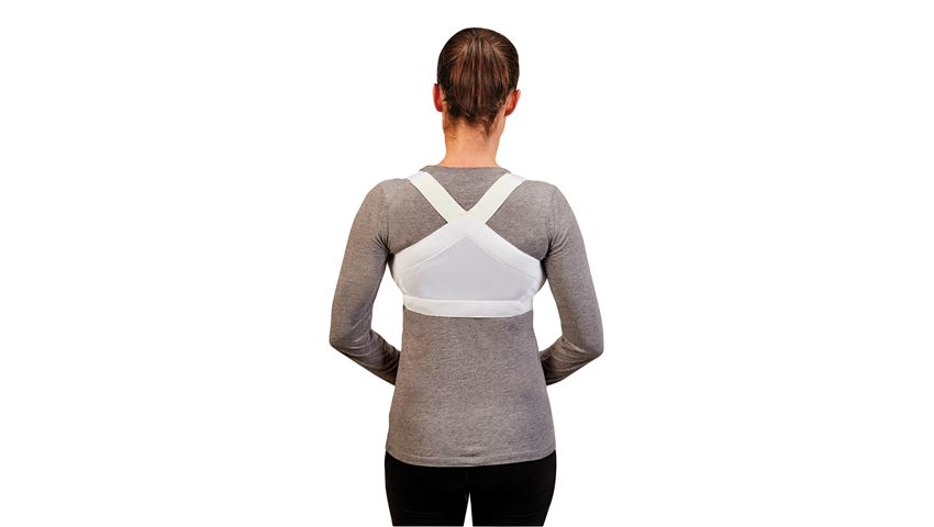 AliMed® ShouldersBack® Lite allows full range of motion while gently reminding the wearer to maintain good posture. By keeping the shoulders retracted and the spine in proper alignment, ShouldersBack Lite reinforces and helps maintain correct shoulder positioning, enabling the wearer to maintain perfect posture. One set of straps fastens just under the chest. The suspender straps that come diagonally across the shoulders can be adjusted to increase or decrease the tension and corrective force. Non-binding all-elastic straps won’t constrict or irritate skin, while new sheer fabric allows all-day comfort in warm seasons and climates. ShouldersBack Lite’s low profile design is virtually undetectable under clothing. For optimal comfort wear over a thin, fitted T-shirt under bulkier clothing.