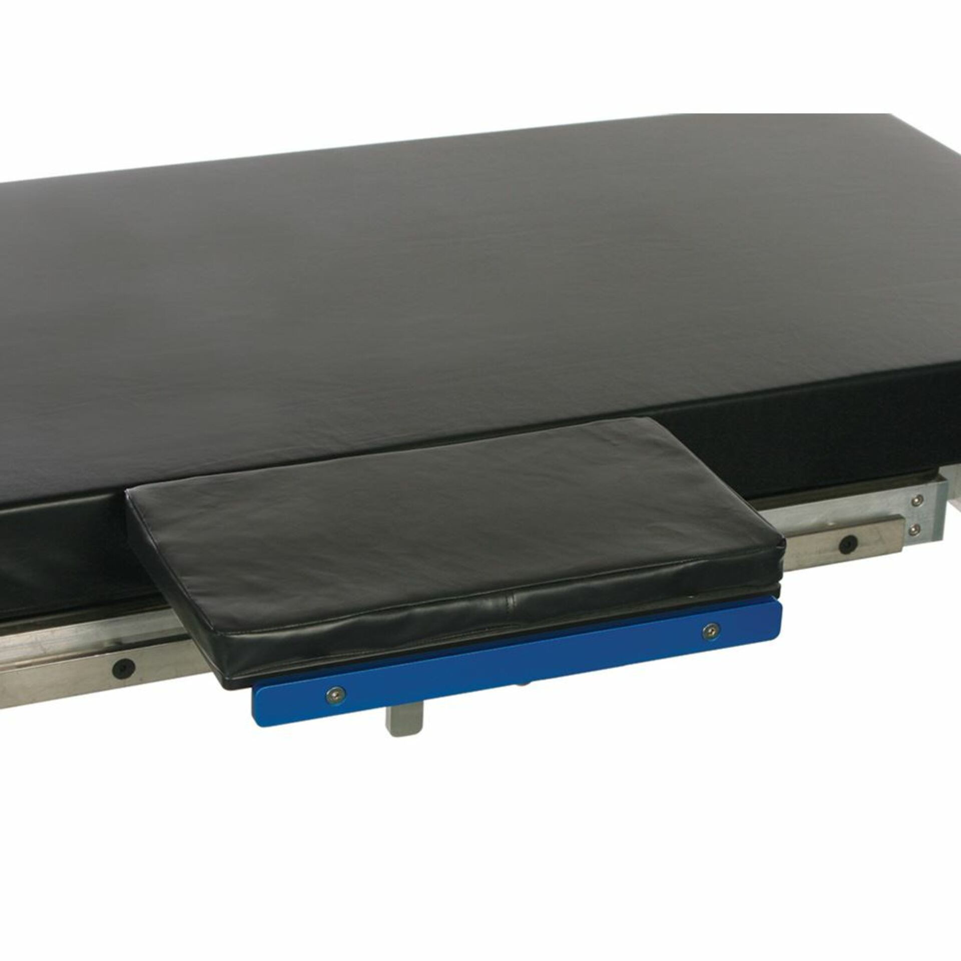 AliMed® Table Width Extenders extend the width of your table without losing side rail use. Attached side rail allows mounting of any table accessory. Raises or lowers to match the level of the table. Extension attaches to O.R. tables. Flat blade compatible with our Universal Rail Clamp (#931899) sold separately). Available in three sizes.
