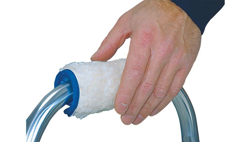 AliMed® Walker Hand Grips for padded comfort and slip resistance. Hook-and-loop fastener holds in place. Choose all-cotton terry with foam underliner or lamb-like fleece with foam underliner.