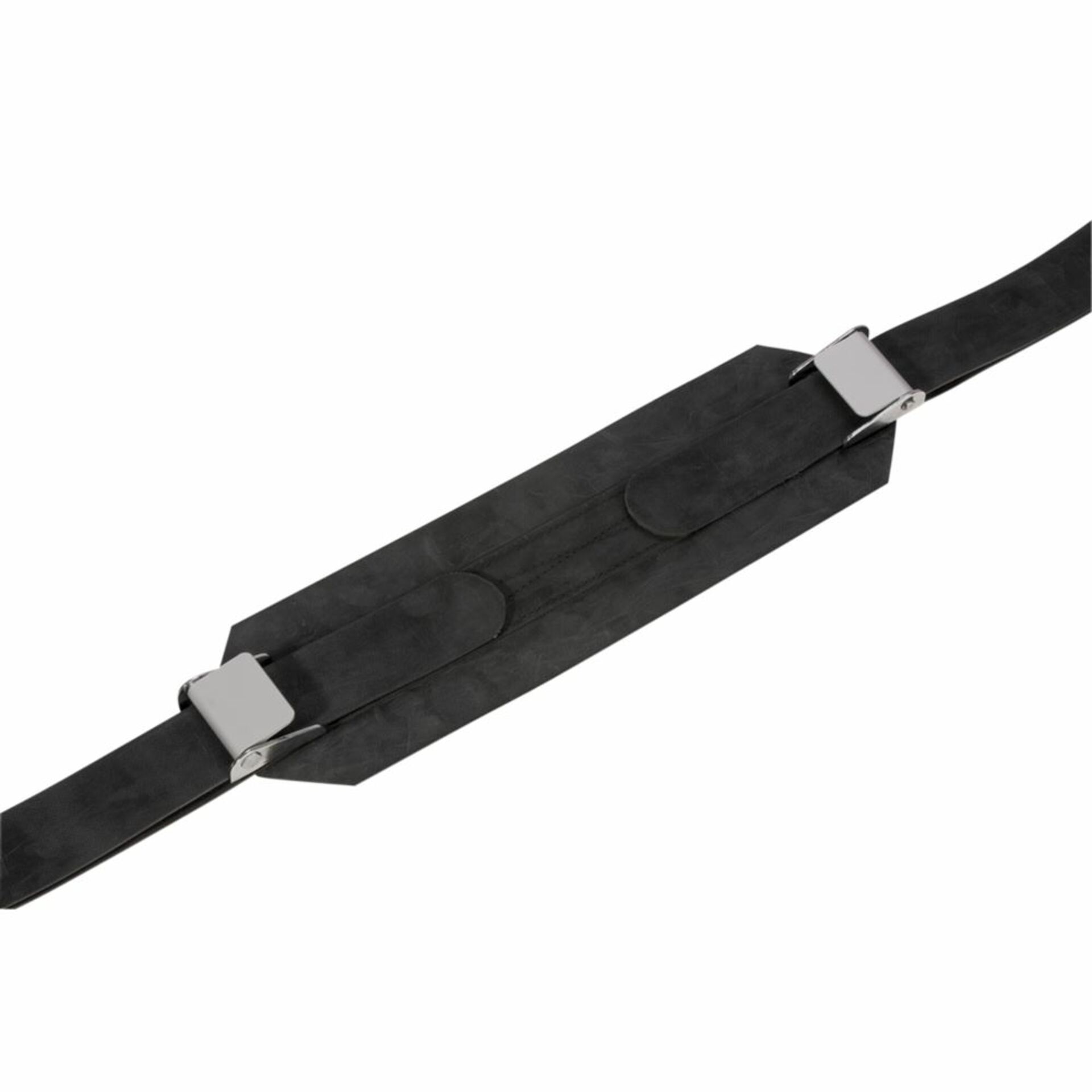 Straps: 2″W • Midpanel: 5″W x 18″L • Neoprene-coated vinyl • Sewn seams • Cam-style metal buckles • Not made from natural rubber latex
