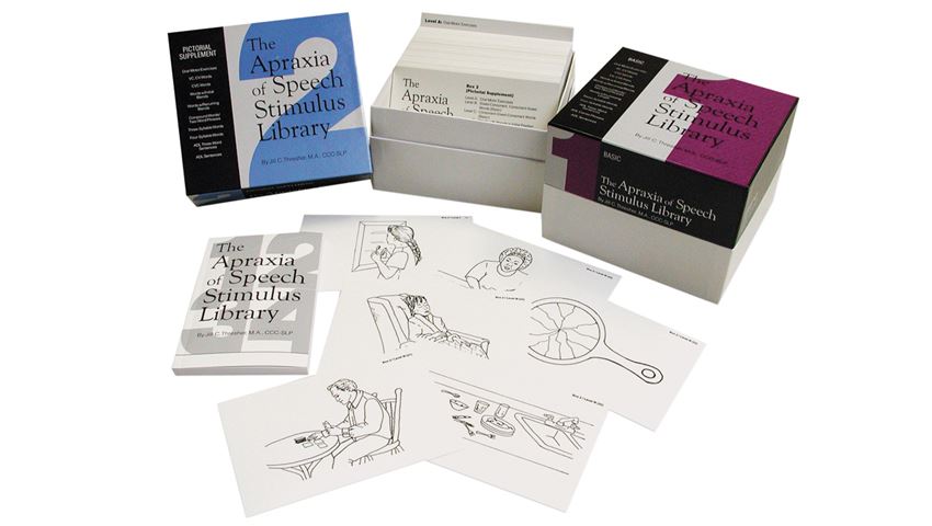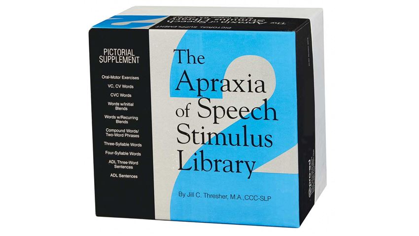 Apraxia of Speech Stimulus Library Jill C. Thresher Help clients with apraxia, as well as aphasia and dysarthria, achieve independence with strategies to improve self-monitoring and self-correcting skills. Flexible and detailed sets of stimulus cards help clients regain accurate voluntary control of articulation. Each set is arranged by category with high-interest words and practical phrases.