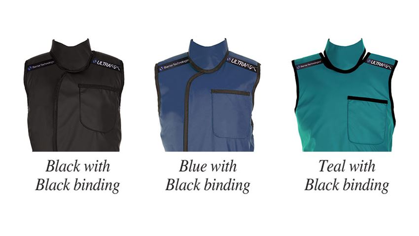 Includes attached thyroid shield. Available in Black, Blue, and Teal.