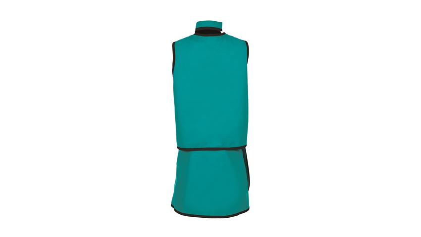 Barrier Technologies UltraFlex™ Support Lead-Free Vest and Skirt Apron Two-piece style with VELCRO®-brand closures offers maximum freedom of movement with full front and back radiation protection. Even weight distribution between shoulders and hips helps reduce body fatigue. Elastic back and shoulder pads for greater comfort and support. Unique non-porous, urethane-coated UltraFlex fabric is antibacterial, stain-resistant, and impervious to liquids, eliminating stains and risk of exposure to hazardous fluids produced during procedures. Lightweight, four-way stretch fabric is comfortable to wear and easy to clean with any disinfectant.