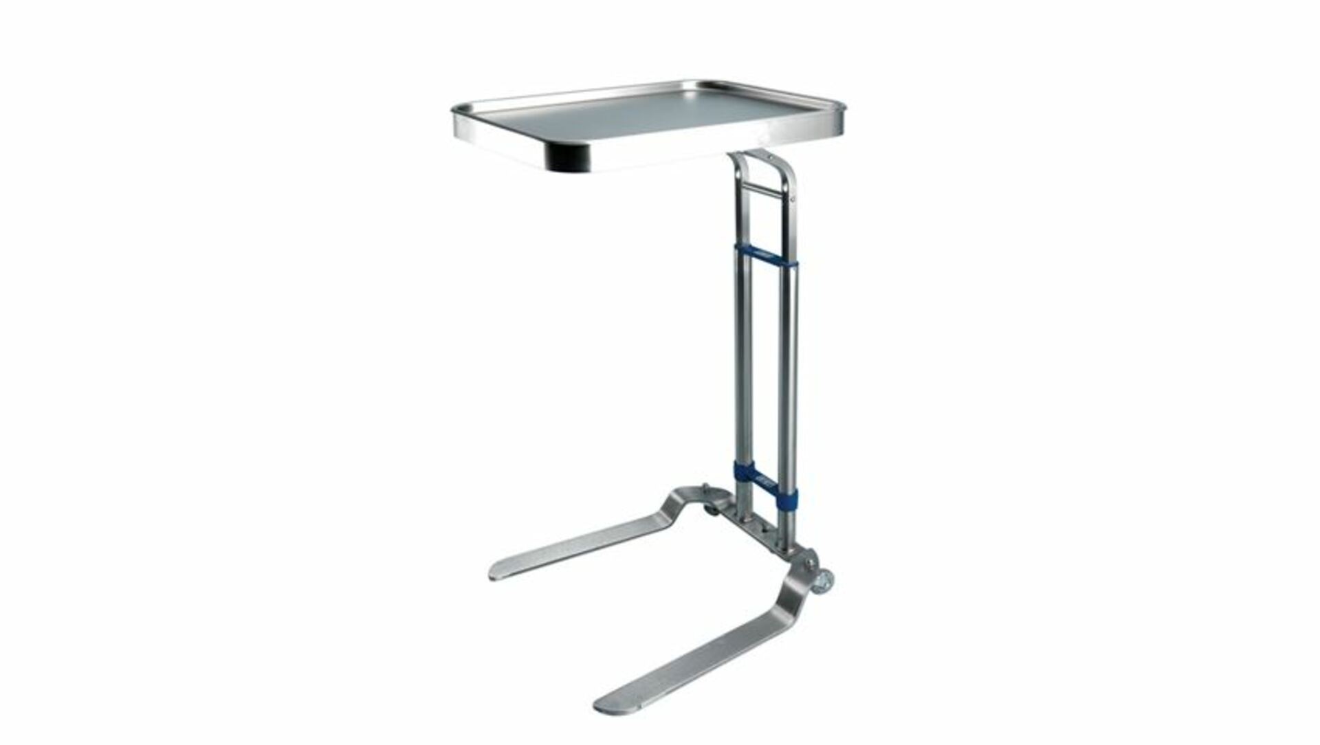 Blickman Benjamin Mayo Stand raises smoothly without control button and locks at any point. Guarded foot control prevents accidental release. Jumbo Mayo Stand has an oversized tray supported by an additional 3/8″ brace. Cast-iron inner bases for added stability.