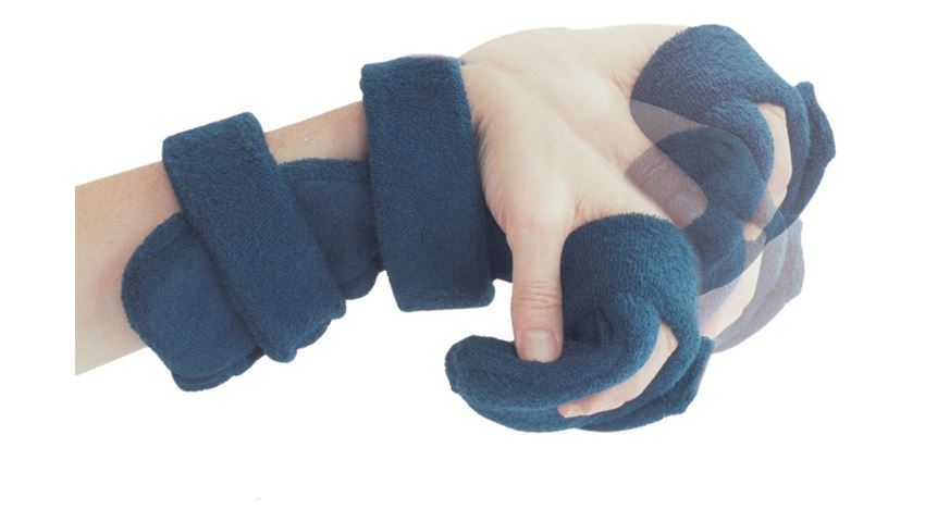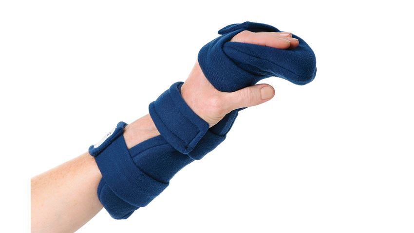 Comfy™ Adult Spring-Loaded Goniometer Hand/Wrist Orthosis Versatile, multipurpose orthosis supports and positions weak or deformed wrists, hands, or fingers. Customizable support for gradual extension of nonfixed contractures of the wrist and hand, featuring adjustable metal frame that bends to fit without heat or additional tools. Side wings prevent ulnar/radial deviation. Spring-Loaded Goniometer allows for range of movement and can be set to static position or to adjust flexion/extension in 5° increments, with added spring that applies dynamic stretch force to push wrist to desired degree of extension. Large Pan model has 1″ longer forearm length. Fits left or right.