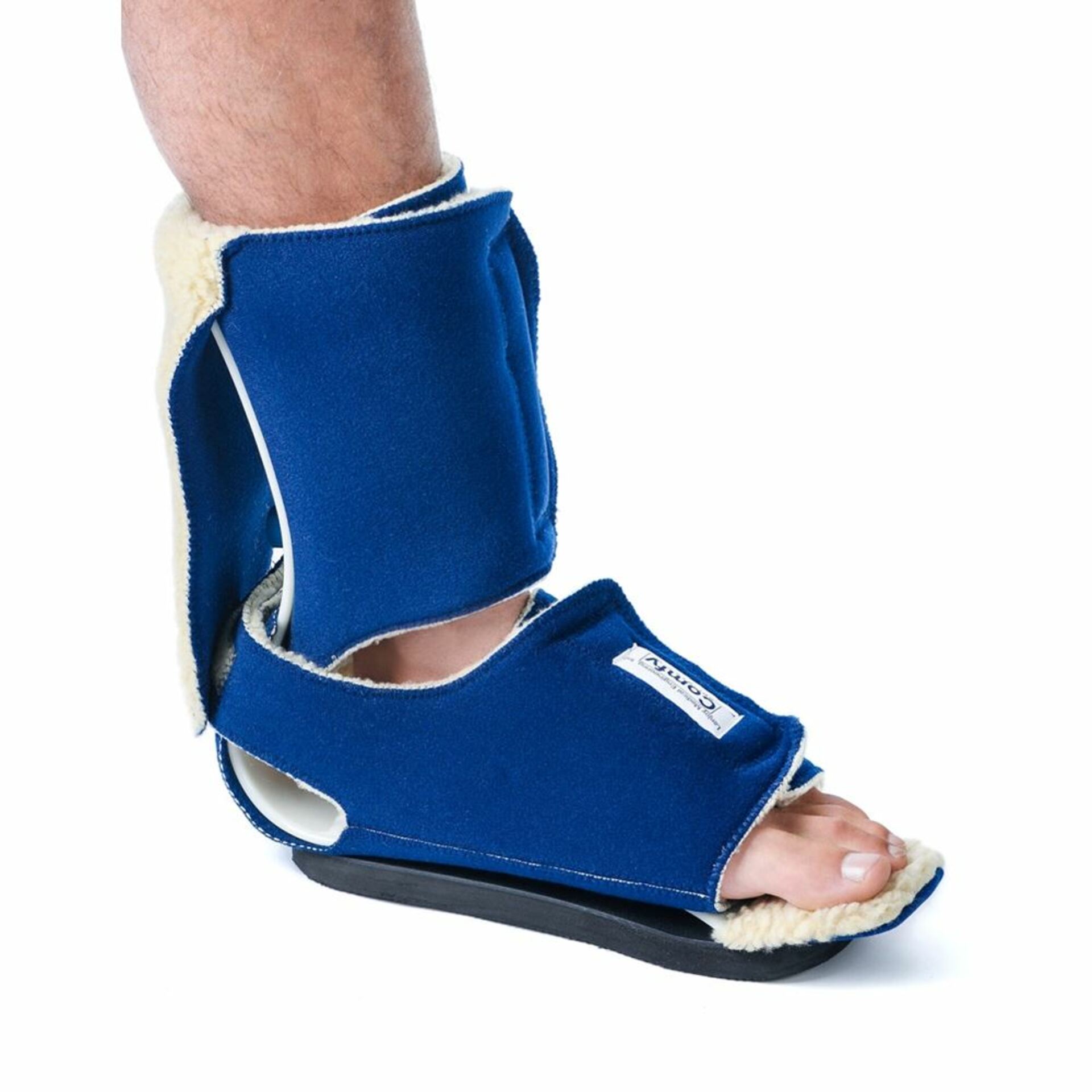Comfy™ Ambulating Boot Splint features a nonslip rubber surface sole for transfers and limited ambulation. Cover for surface sole is stored in frame while walking. Same Comfy fleece-lined padding and heel-protecting contour to eliminate pressure areas as the standard Comfy Boot Splint (#64734). Boot frame resists plantarflexion while providing a dynamic push to extension for correction of footdrop, foot-ankle contractures, and deformity. Adjustable toe post relieves pressure on toes and adjusts to accommodate variation in foot sizes. Features removable, washable cover and anti-rotation bar, which is hidden under the cover.