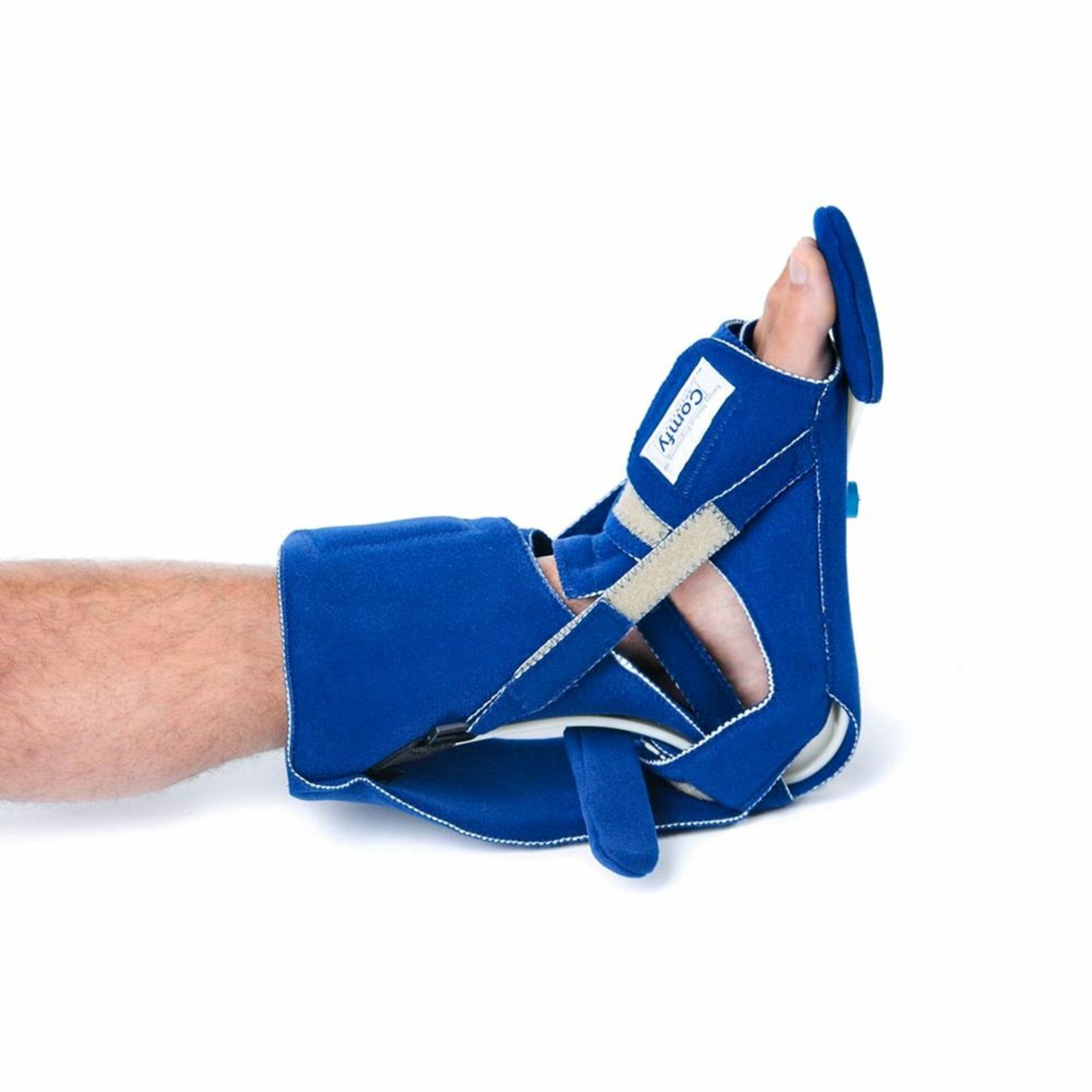 Comfy™ Ambulating Boot with Adjustable Strap keeps heel in floating position to prevent pressure areas while the anti-rotation bar controls hip and leg rotation. Adjustable dorsiflexion straps prevent plantarflexion and an ankle strap secures to prevent ankle flexion. Adjustable toe post accommodates all foot sizes. Antimicrobial surface protector shields against mold, mildew, stains, bacteria, fungus, and algae. Removable, machine-washable, non-fleece headliner cover. Extender kit to accommodate wider or edematous feet. Model with Ambulation Pad includes removable, soft, nonslip rubber surface sole. Fits left or right.