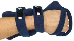 Comfy™ Adult Cuddler™ Hand/Wrist Orthosis Versatile, multipurpose orthosis supports and positions weak or deformed wrists, hands, or fingers. Customizable support for gradual extension of nonfixed contractures of the wrist and hand, featuring adjustable metal frame that bends to fit without heat or additional tools. Side wings prevent ulnar/radial deviation. Adjustable butterfly frame offers additional support and better fit around the wrist and forearm. Terrycloth covers are soft, removable, and machine-washable with thicker foam padding and DriRelease® fabric embedded with Freshguard® to help absorb moisture and neutralize odors. One size (Adult). Fits left or right. Navy.