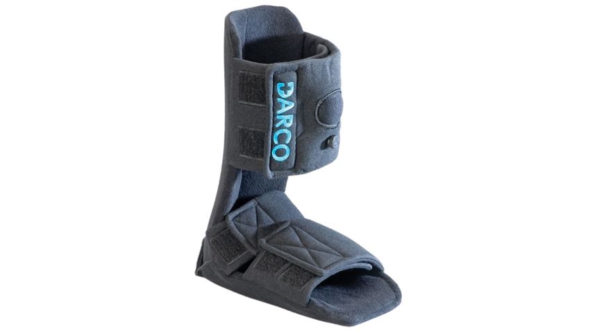 DARCO® Pneumatic Night Splint Plantar-based shell with terry cloth lining positions ankle in neutral. Adjustable pneumatic air bladder beneath forefoot increases dorsiflexion for improved stretch. Nonslip tread on sole. Fits left or right. Hand bulb (included) can be stored in toe strap pocket.