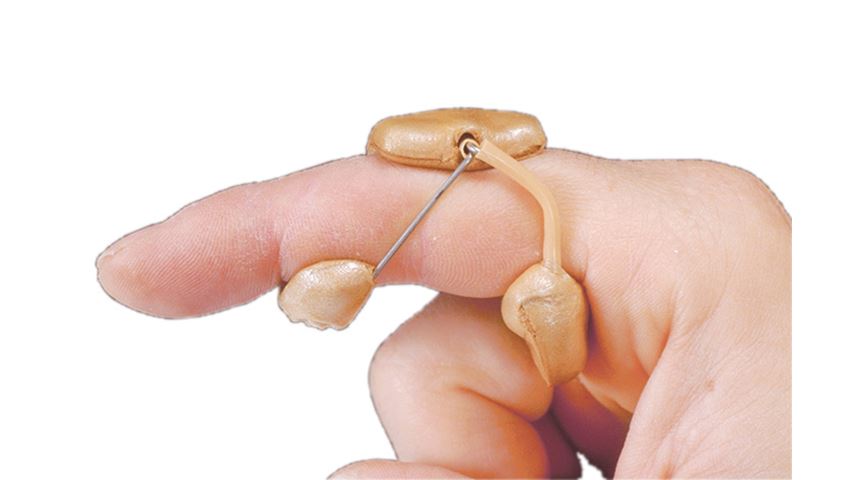 DeRoyal® LMB Spring PIP Finger Extension Assist (Model 504) corrects boutonniere deformity and treats PIP tightness. Shorter version of LMB Spring Finger Extension Assist (Model 501, #5389). Force at 15° flexion is approximately 8 oz.; 90° flexion is approximately 4 lbs. Wire-Foam™ for a customized fit.
