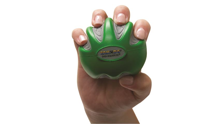 Digi-Squeeze® Exercisers Foam exercise balls used to develop isolated finger strength, flexibility, and coordination. Use for rehabilitation of carpal tunnel, arthritis, stroke, fracture, tendon injury, nerve lacerations, tennis elbow, and more. Ball has thumb positioning for left/right use. Size for small, medium, or large hands. Color-coded for progressive rehab. Includes one of each resistance: X-Light (Yellow), Light (Red), Medium (Green), Heavy (Blue), X-Heavy (Black). Also includes an exercise pamphlet.