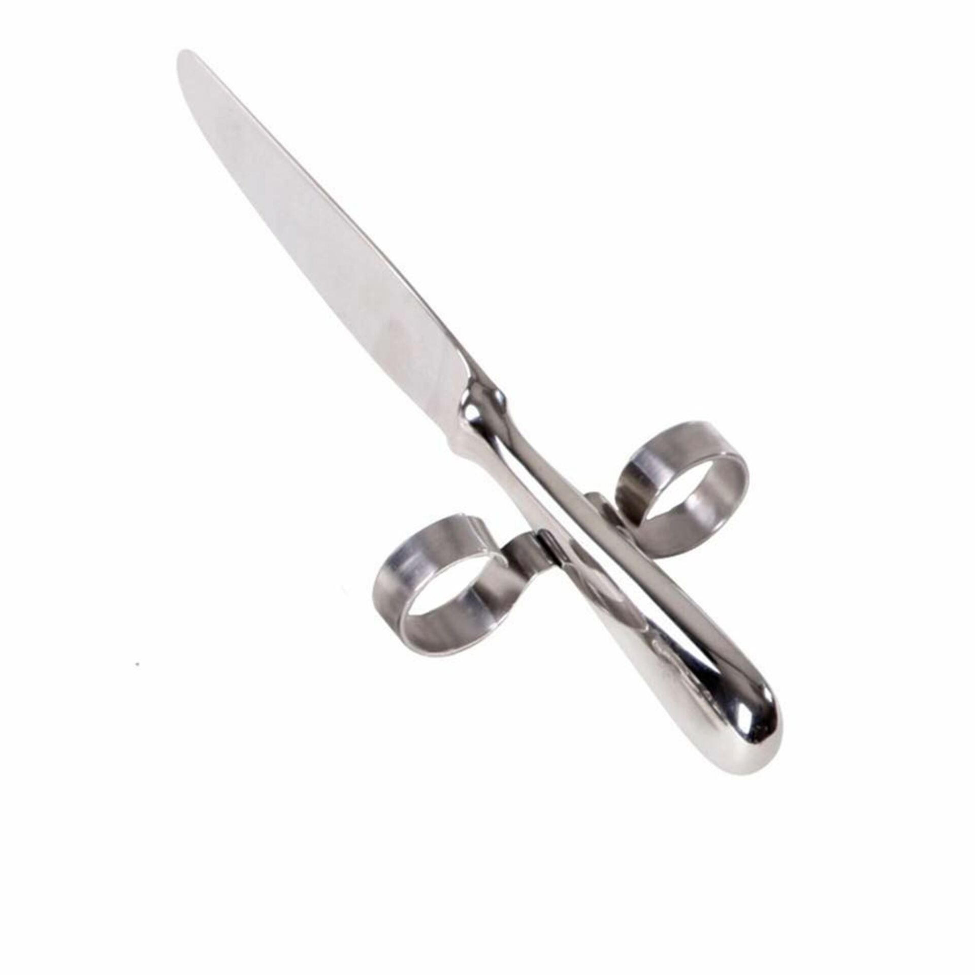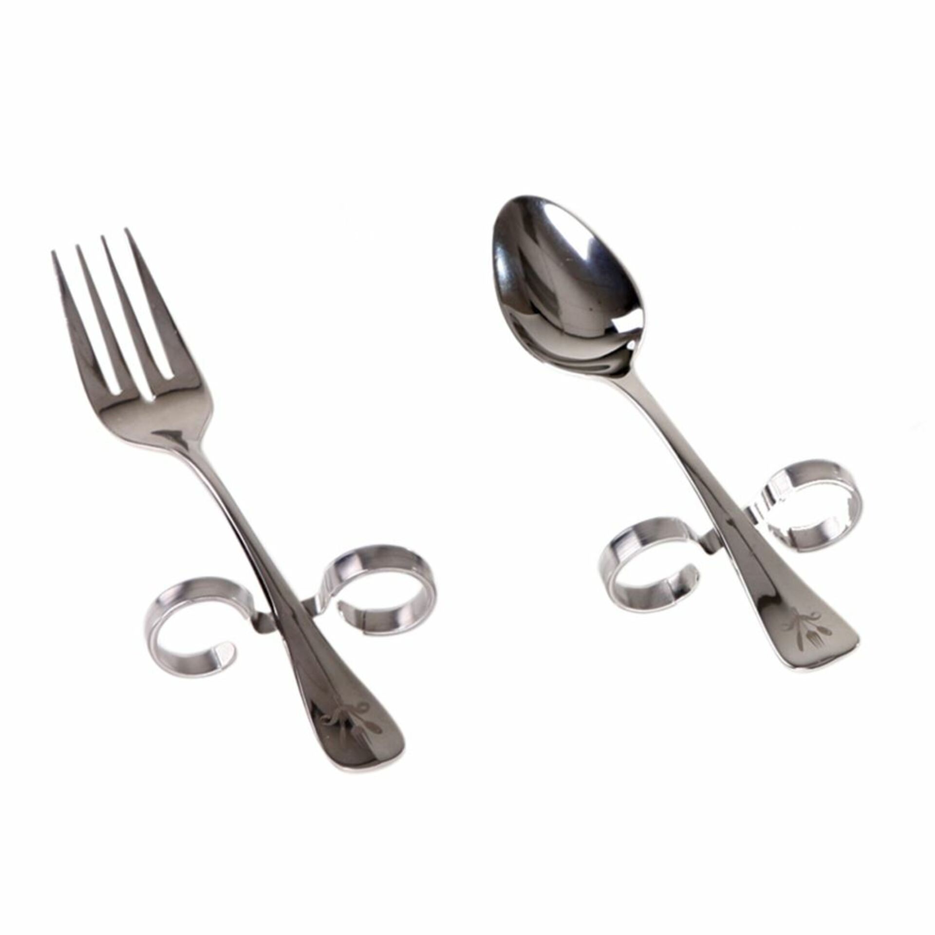 The elegant, patented design enables those with grasp impairments to grasp their fork, knife and spoon, independently. An elegant adjustable yoke is attached to each implement handle and easily encircles the thumb and forefinger. Utensils with straps may work, but many grasp impaired people can’t put the strap on, whereas with the Dining with Dignity series it is easily grasped and used.