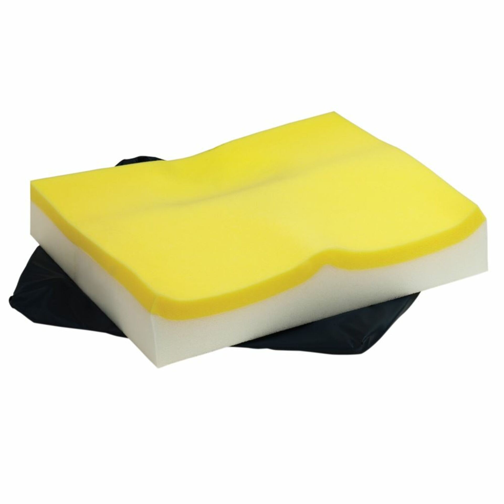 EZ-Dish™ Cushion reduces pressure on ischials and coccyx. For moderate to high-risk users. Contoured bottom layer encourages healthy, upright posture and proper positioning of the legs. Comfortable visco-elastic “memory foam” top molds to the anatomically shaped, round-edged pocket below in the high-density base.