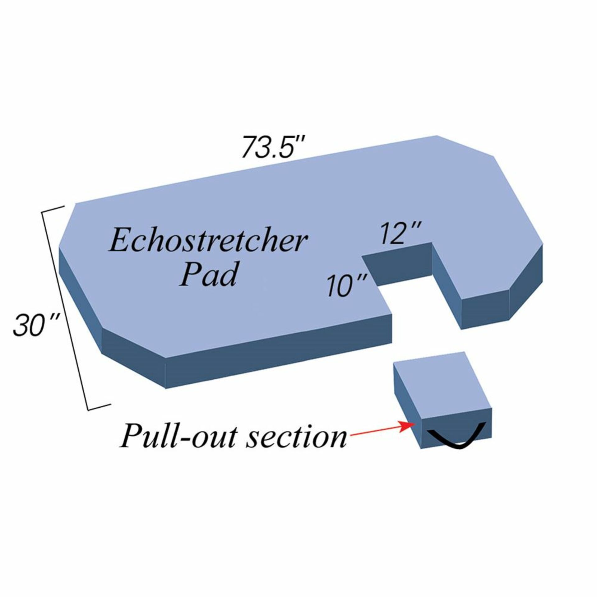 Echocardiography Pad Why spend money on a new echo bed? Easily convert any hospital bed or stretcher into an echo bed for a cost-savings alternative. Echo Bed or Echostretcher Pads sit atop standard hospital bed platforms or patient stretchers with patient positioned laterally so the heart is shifted to the left. 3-Piece Echo Bed pullout section creates an 18″W x 20″L space and 2-Piece Echostretcher pullout section creates a 10″W x 12″L space for optimal visualization. Non-ambulatory patient transfer is easier. Polyfoam with removable waterproof vinyl cover and water-resistant seams.