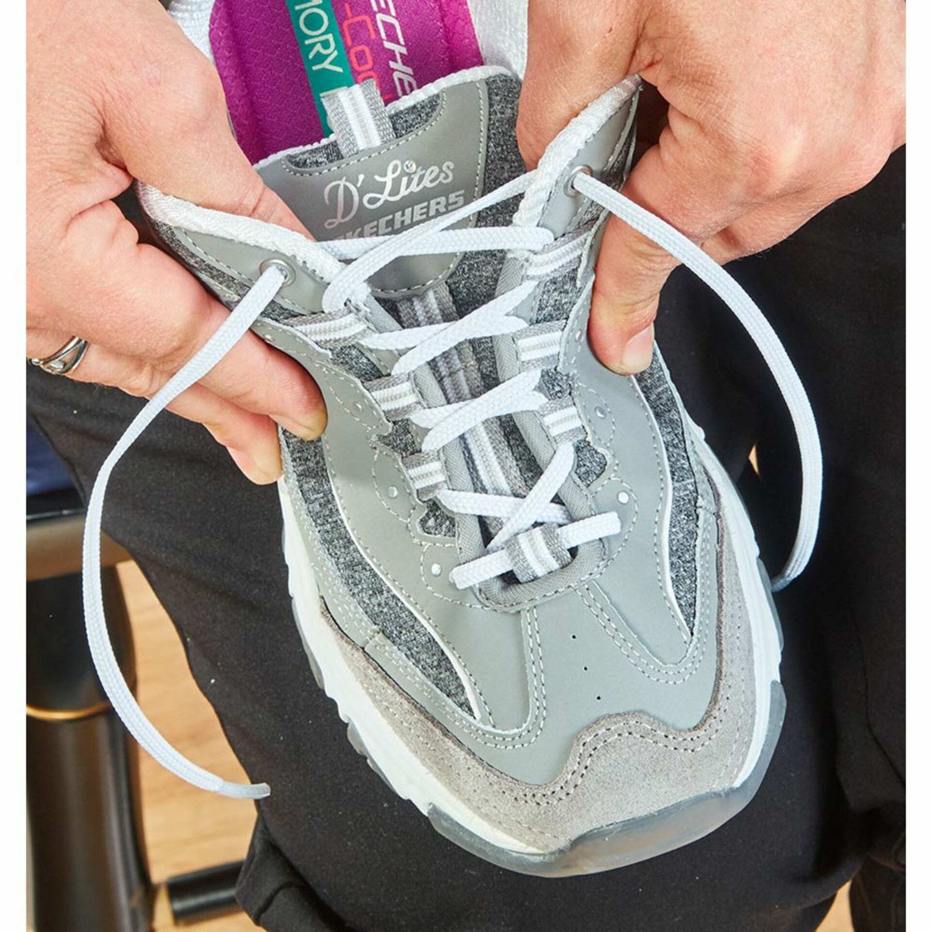 Elastic Shoe Laces allow you to just slip your shoes right on – without tying! Designed for those who lack the dexterity to tie shoes. Change any lace-up shoe to a slip-on and just pull the laces to the desired tightness. Laces come 2 pairs per pack in White, Black or Brown.