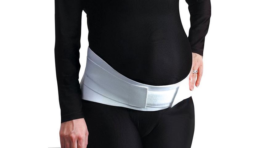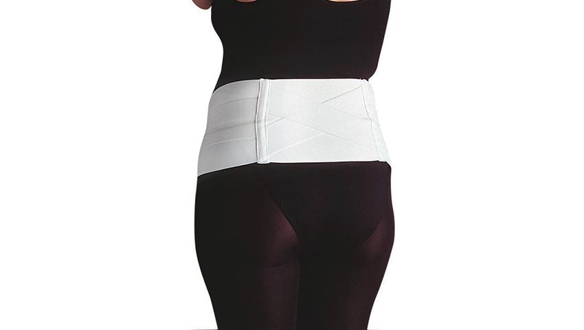 Embrace Moderate Support Maternity Belt provides moderate abdominal and lumbar support for back pain associated with pregnancy. Evenly transfers the weight of the abdomen to the spine. Contoured front abdomen. Made of cotton, polyester, and rubber for comfort.