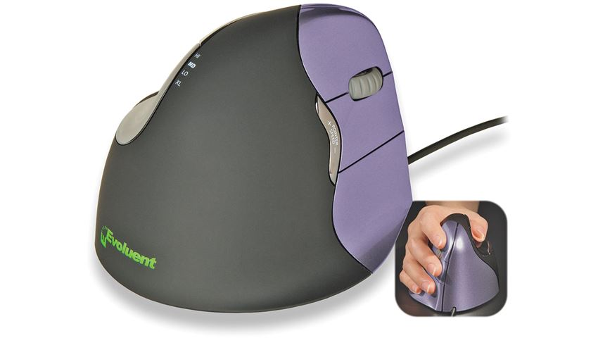 Evoluent® VerticalMouse™4 New adjustable laser sensor controls pointer speed and can be adjusted without changing grip. Top-mounted LEDs show selected pointer speed. Six programmable buttons, vertical scroll, auto click and click lock.