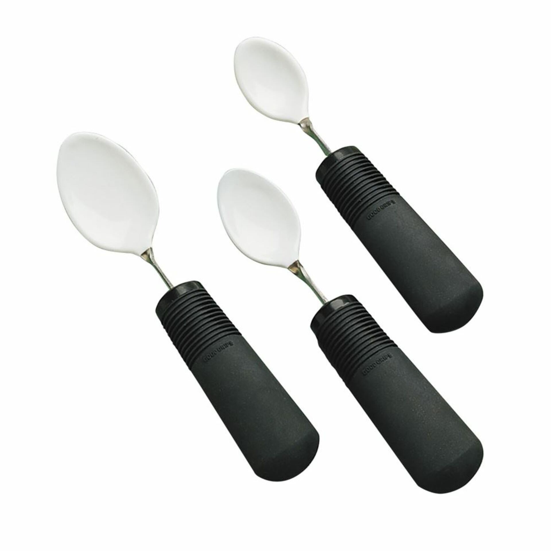 Good Grips® Coated Utensils Flexible built-up handle with soft ribbing adapts to any grip. Silicone coating protects teeth and lips from injury. Ideal for patients with limited grasp strength, biting reflexes, and limited coordination. Not made with natural rubber latex. Choose single Youth Spoon, Teaspoon, or Tablespoon, or a Set of 3 (includes one of each).