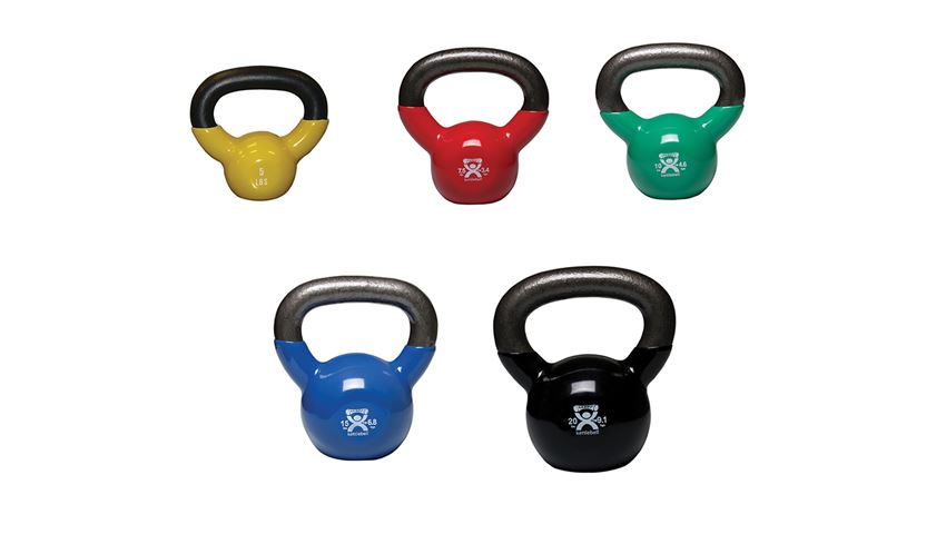 Kettle Bell Weights Vinyl-coated, color-coded cast iron kettle bells for rehabilitation, strength training, and toning. Vibrant colors make it easy to identify weights. Coating on weights protects against floor scratching. Marked both in pounds and kilograms. Available in 7 weights from 5 to 30 pounds. 5-piece set includes one each: 5, 7-1/2, 10, 15, 20 lb. weights.