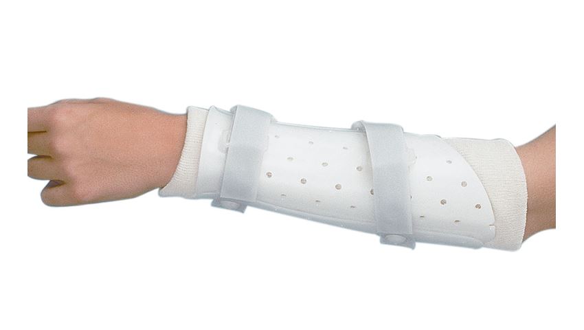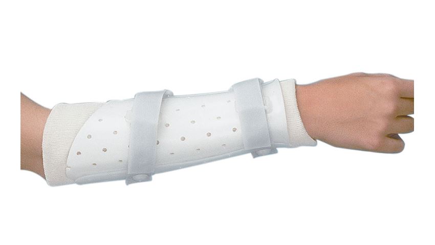 Miami Prefabricated Ulnar Fracture Brace for treatment of midshaft and distal ulnar fractures. Full range of wrist and elbow motion. Includes one stockinette. 1/8″-thick foam padding.