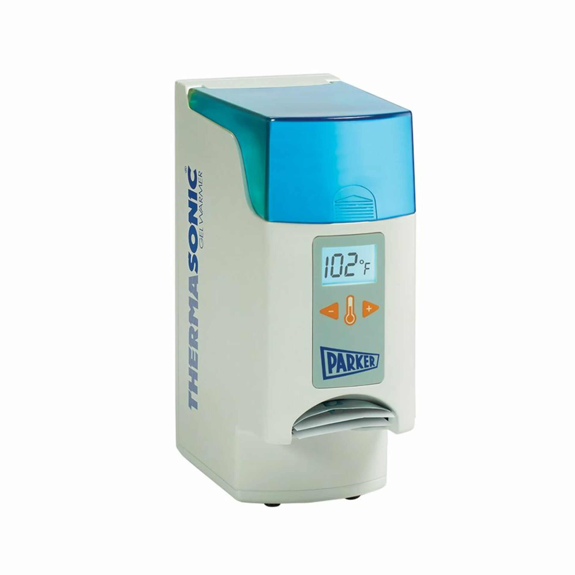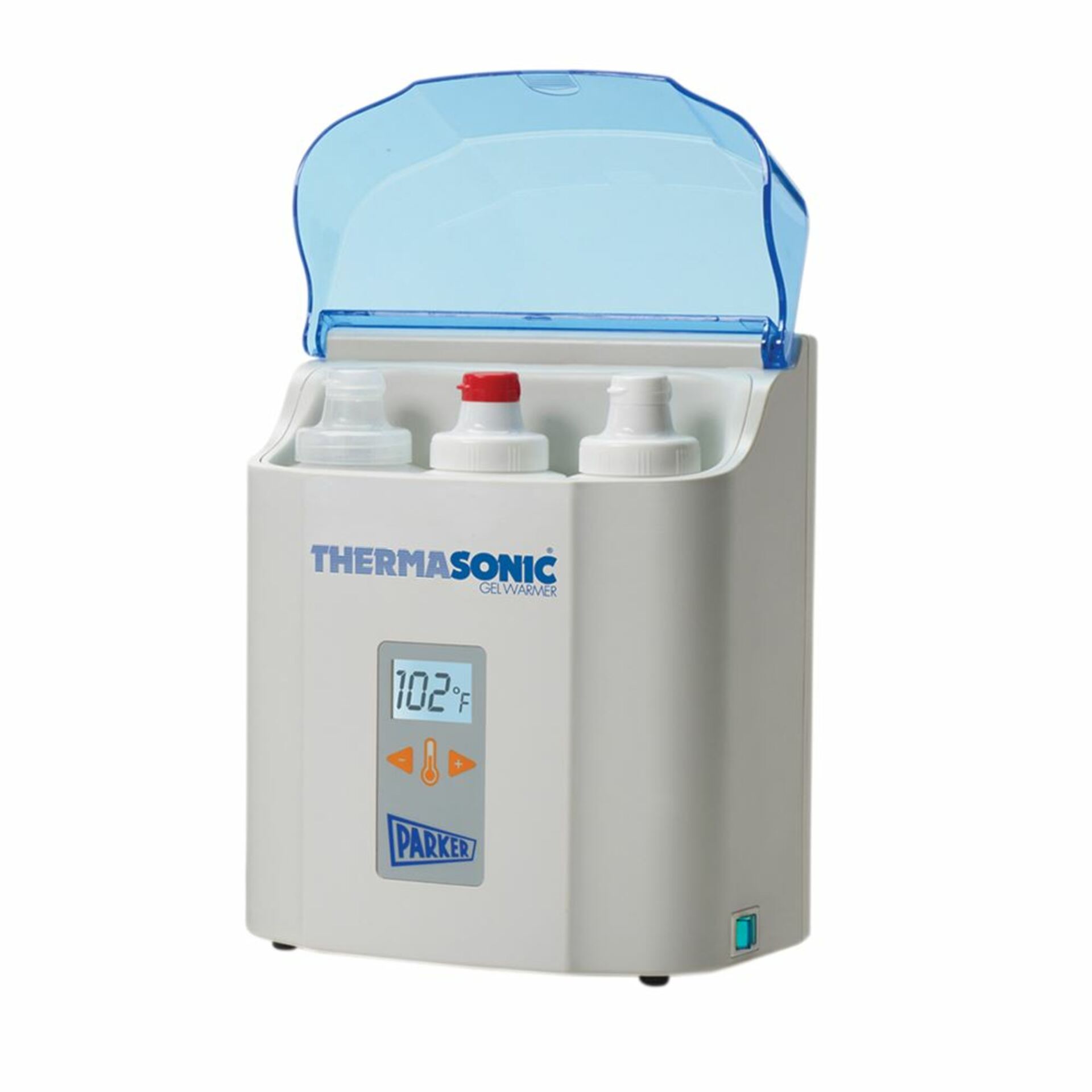 Parker Labs THERMASONIC® Gel Warmer Rapidly and uniformly warms ultrasonic gel bottles or packets for enhanced patient comfort. Consistently monitors and maintains temperature with thermal cutoff to avoid overheating. Available in 4 models: Single-Bottle with heat indicator lamp, Multi-Bottle with LED or digital LCD display (includes three bottles of ultrasound couplant), or single-use 20-Gram Packette Gel Warmer with LCD display. Multi-Bottle and 20-Gram Packette units feature adjustable temperature control. LCD?models display in both Fahrenheit or Celsius adjustable in 1° increments. All models are wall-mountable or can be placed on a countertop. UL-listed and CSA-approved. 2-year warranty.