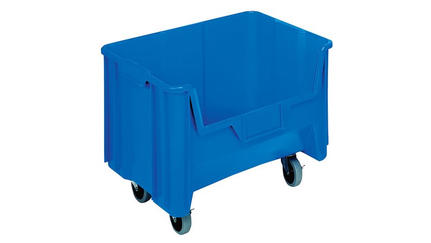 Quantum® Giant Stack Containers, 19-7/8″W x 12-7/16″H x 15-1/4″D features wide open hopper front for easy access to large part storage. Large grip side handles for easy stacking up to six containers high with a 100-lb. capacity per container. Injection-molded from high-density polypropylene. Rust- and corrosion-resistant and impervious to most chemicals. Large label holder for quick identification. Regular models can stack on Mobile models, which include four 3″ swivel casters, all with brakes. Available in Blue, Grey, or Red.