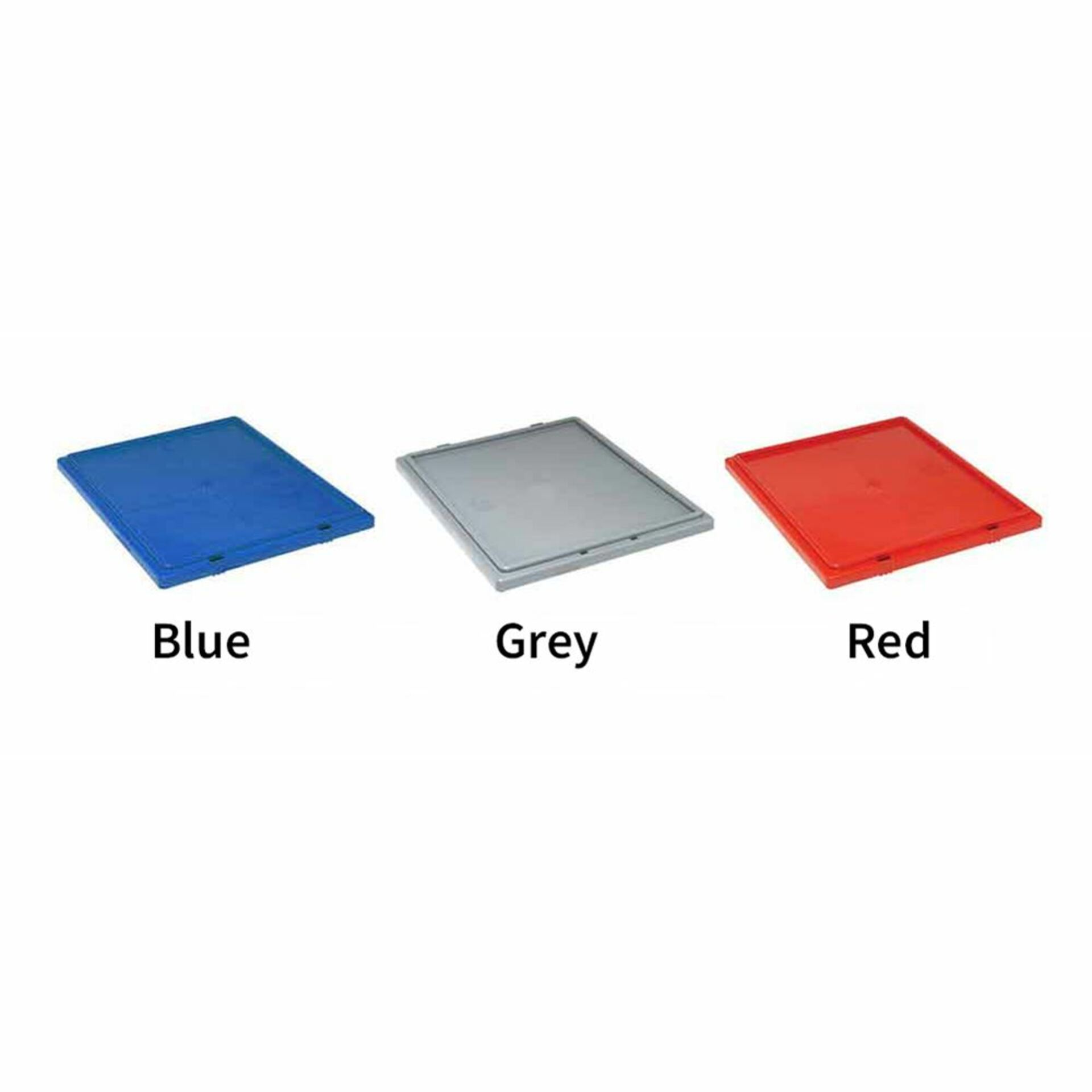 Optional Lids, sold separately. Available in three colors: Blue, Grey, or Red.