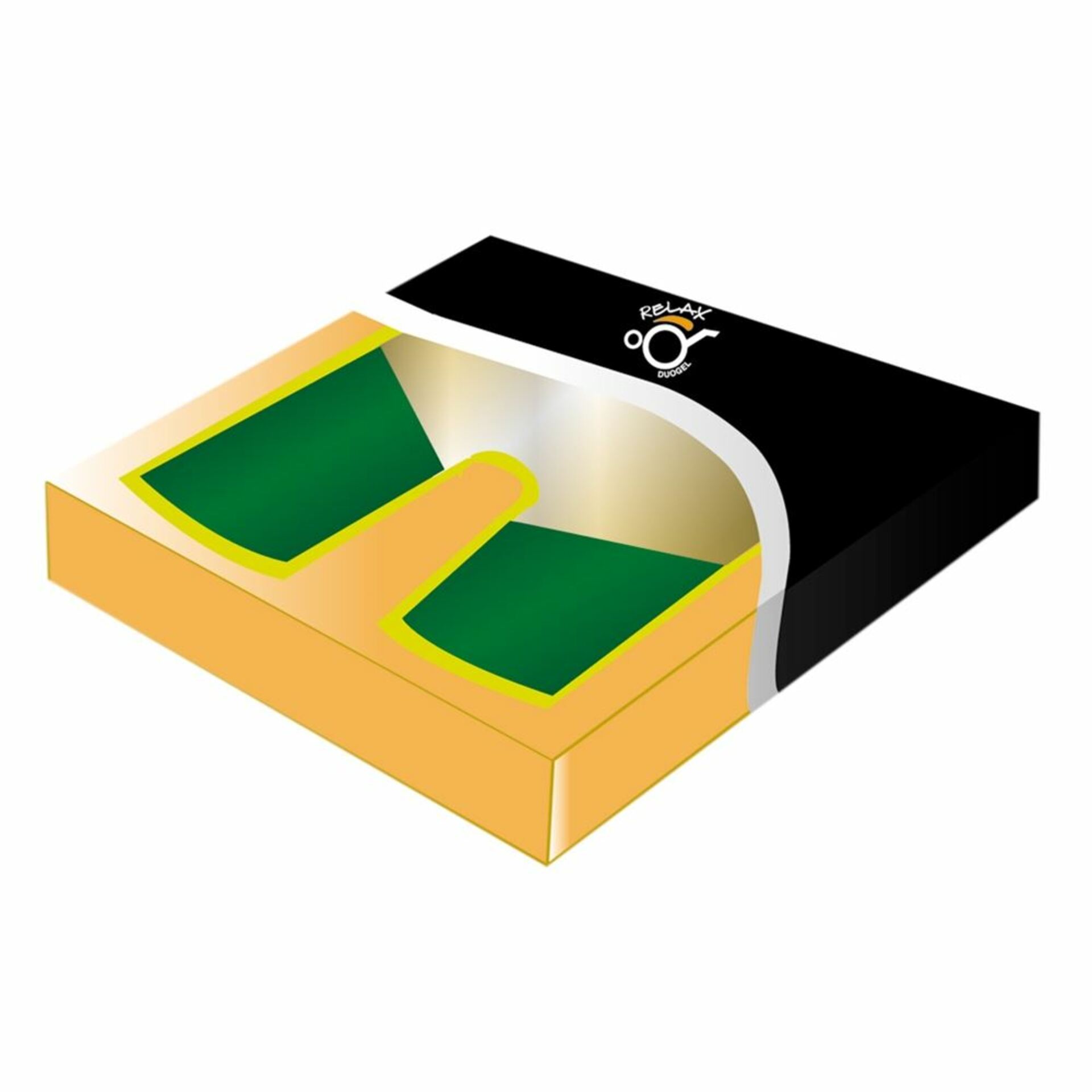 Relax™ Duogel For medium-to-high risk patients. Anatomically-shaped foam base to promote posture. Offers pressure relief and weight distribution. Combination of silicone gel Trugel and silicone oil FloGel. Top/back labels ensure correct cushion placement. Waterproof, removable stretch cover. Black.