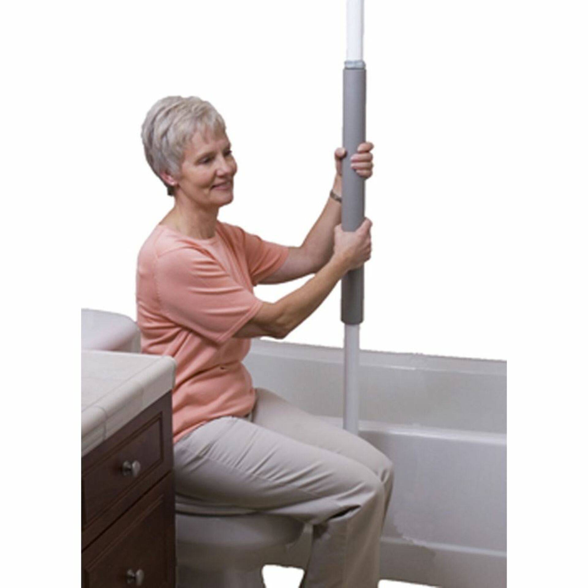 Security Pole provides safe, secure support for sitting, standing or for transferring a patient to a walker, wheelchair or other mobility device. It is tension mounted can be moved to any room in your home whenever necessary. It will accommodate 7 foot to 10 foot ceilings. Made from rust resistant zinc plated steel with durable powder coat finish. White or Black.
