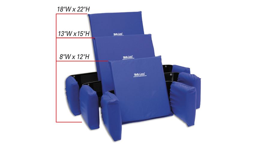 SkiL-Care™ Adjustable Lateral Support Maximum support is provided by width adjustable side panels. Minimizes left/right leaning in wheelchairs and other chairs. Foam-padded sides adjust laterally for a custom fit and do not interfere with users’ ability to reach wheelchair hand rims. Lateral supports secure into place behind backrest pad (included). Wipes clean for easy care.