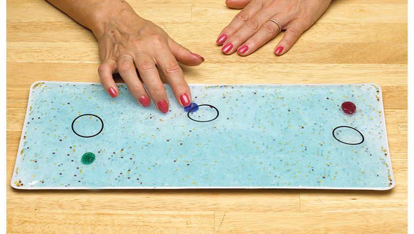 Gel Shapes Sensory Items Cushion tabletop to protect against injury caused by uncontrolled motor activity. User guides plastic disks around gel. For tactile and visual stimulation and to enhance eye-hand coordination. Build finger strength, improve hand dexterity, and increase attention span. Great for Alzheimer’s and patients with dementia.