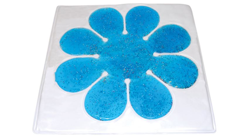Flower Gel Pad This heat-sealed vinyl, gel-filled Flower Pad can be used as a convenient and comfortable seating platform when used on the floor. It can also be used on the table as a sensory stimulation pad that will provide tactile and visual stimulation. Stimulation pads enhance eye-hand coordination, improve finger strength and dexterity, and cushion against injury caused by uncontrolled motor activity. These pads also reduce boredom and increase attention span. 24″ x 24″.