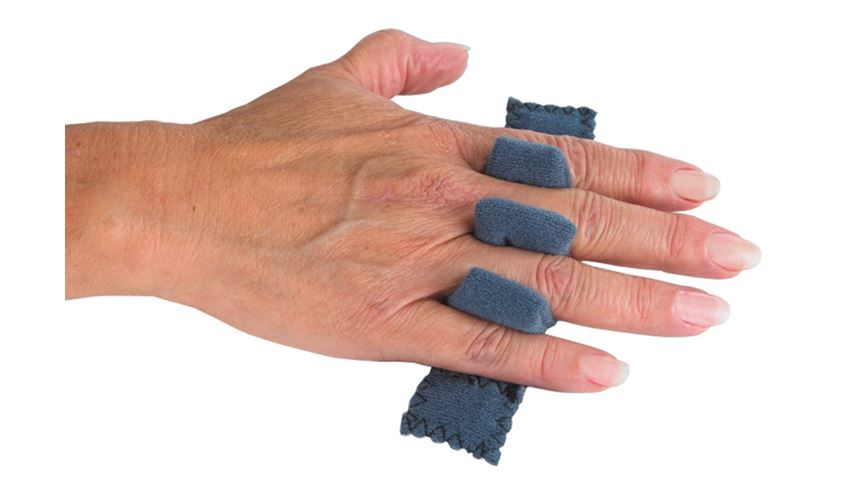 finger platform comfortably supports and protects hand and fingers. Thumb can be positioned under finger platform or if severely adducted, rests on finger platform. Bend-to-fit construction allows modification without heat or tools even at the difficult to fit thumb. Adjustable for ulnar/radial deviation. Extra long wrist strap maintains proper position while applying gentle stretch. Color coded straps facilitate application and staff training. Antibacterial cover fabric helps reduce odor. Extra cover included. Finger separator available separately.