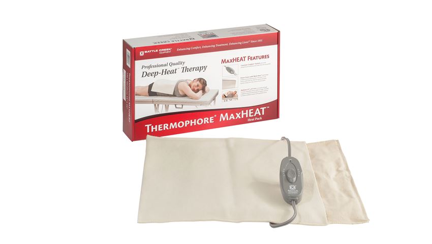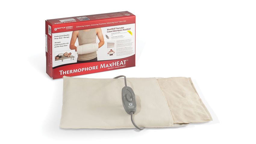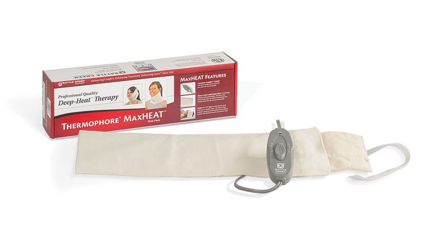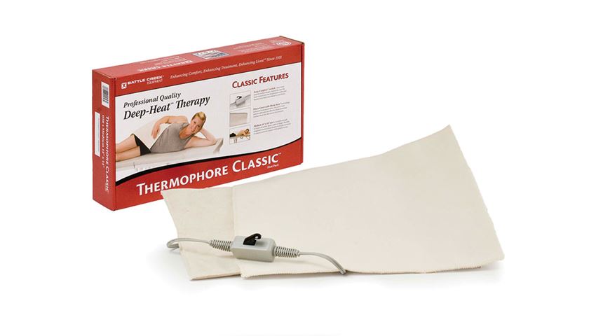Thermophore® Moist Heat Packs Fleece cover with Moist-Sure™ enhances heat penetration, no need to add water. Classic model (available in 2 sizes) is designed with a special hand-held switch giving the user the most control over pad temperature. Just press for heat, release to cool, and alternate. When hand relaxes, unit cools for safety. MaxHEAT model (available in 4 sizes) with Constant-Comfort™ switch has three temperature levels and auto-off timer that automatically turns off after 25 minutes.