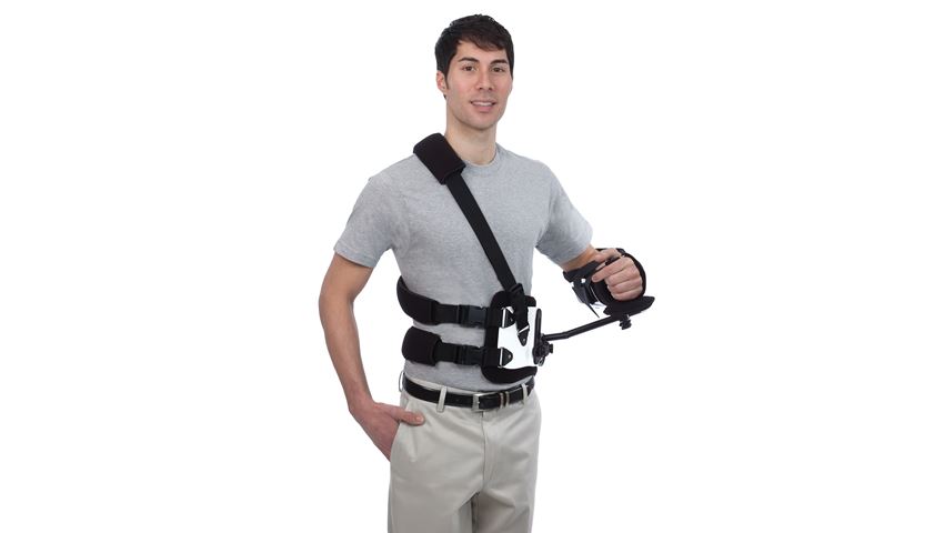 Trulife Gunslinger II Highly adjustable with variable abduction, adduction, and forearm rotation to fi t a wide range of patients and needs. ROM abduction/adduction: forearm 75°, shoulder 45°. Extended forearm attachment increases variable abduction. Low-density polyethylene shell with washable pads and liners. Numbered, quick-snap release buckles for ease of donning and doffing. Washable pads/liners, wipe-clean hardware.