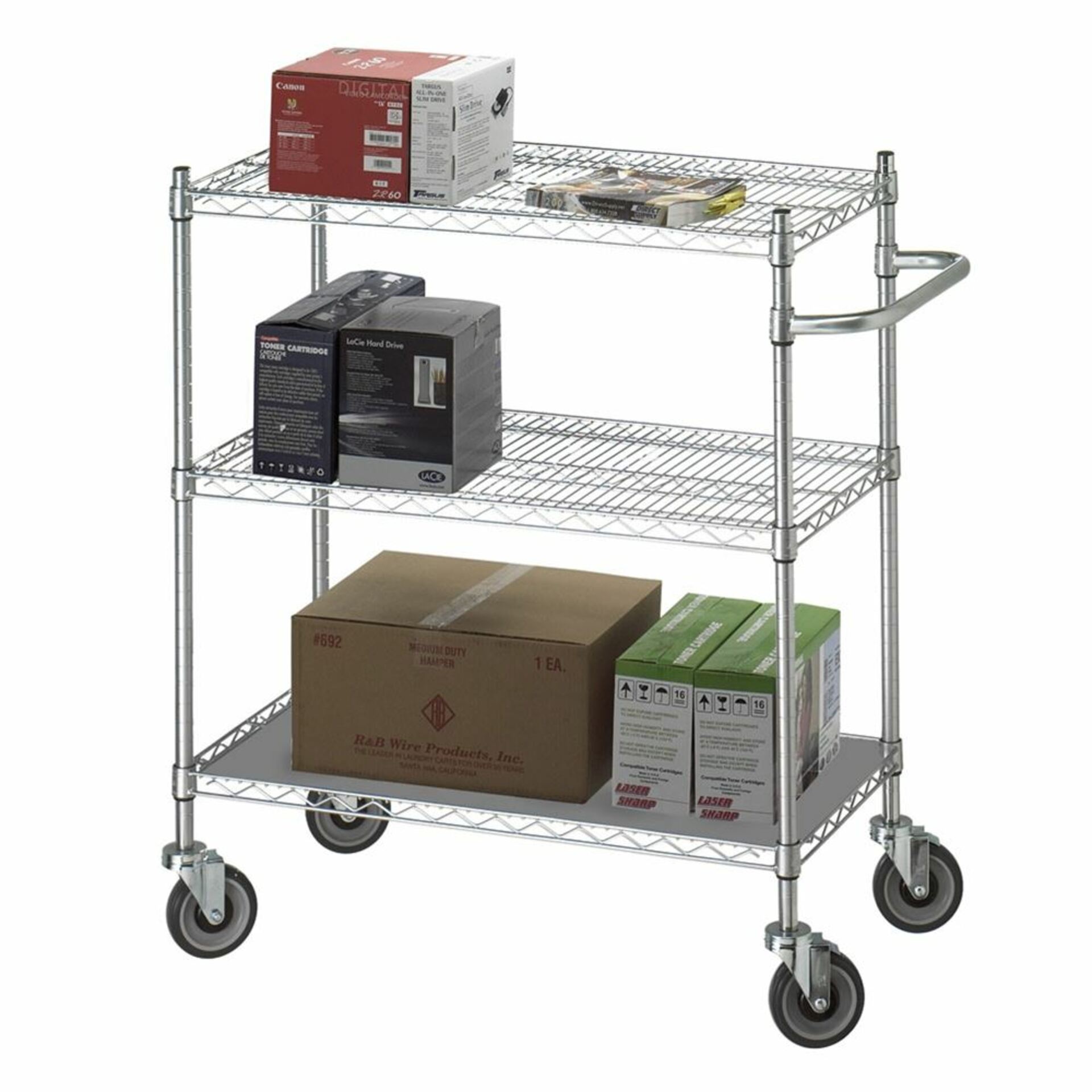 Chrome all-purpose, sturdy 3-shelf cart, 42″H