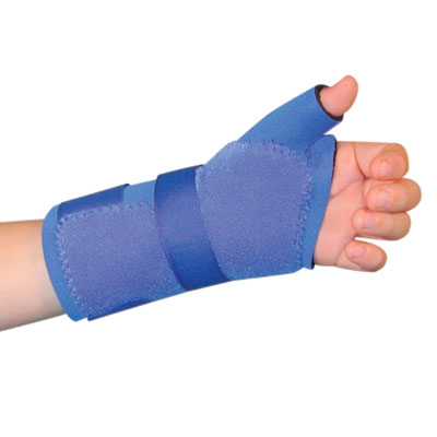 Neoprene splint features a 1/16″ thermoplastic panel that is heated and molds to the wrist to help control wrist flexion, hyperextension and ulnar deviation. A neoprene thumb post extends to the IP Joint, while the thermoplastic panel extends over the CMC to the MCP joint of the thumb. Features Velcro® fasteners at the thumb, wrist and forearm for easy application and removal.